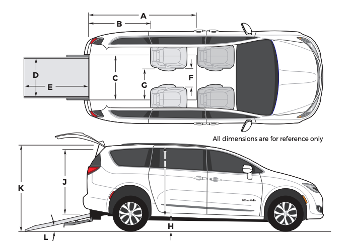 | OEM mid-row seats (one folded up) | G | 23.5" |